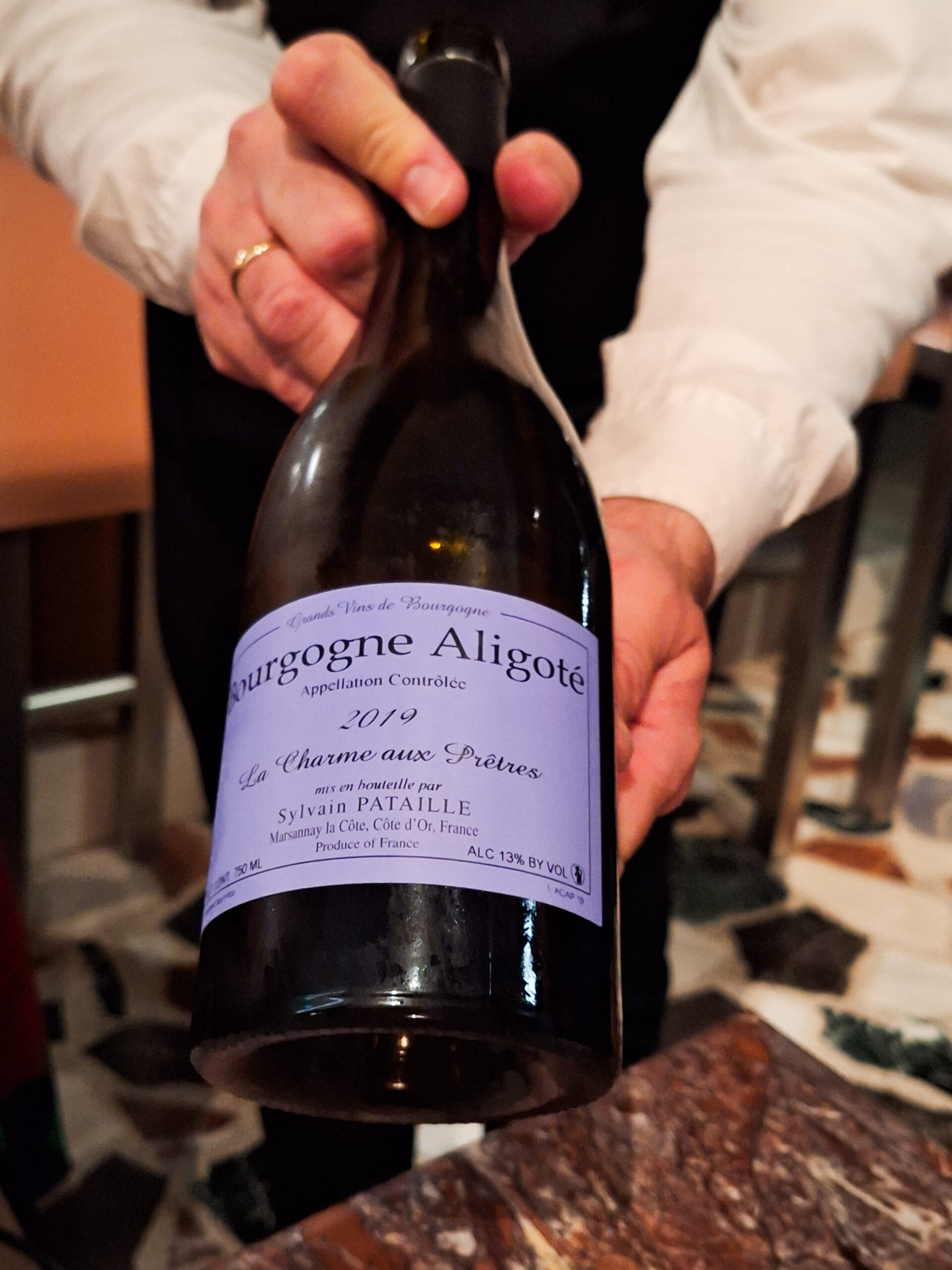 Μέχρι να έρθουν και οι υπόλοιποι της παρέας, το βράδυ μας ξεκίνησε με ένα Bourgogne Aligoté του 2019 από Domaine Sylvain Pataille. Το γεμάτο σώμα του, τα αρώματα από μέλι, λεμόνι και τα ζουμερά φρούτα, ταίριαξαν υπέροχα με μερικά τυριά (ειδικά με το κατσικίσιο chevre) και αλλαντικά, προσεκτικά διαλεγμένα από τη κουζίνα του Gallina, πλάι από το ζυμωτό ψωμί τους.