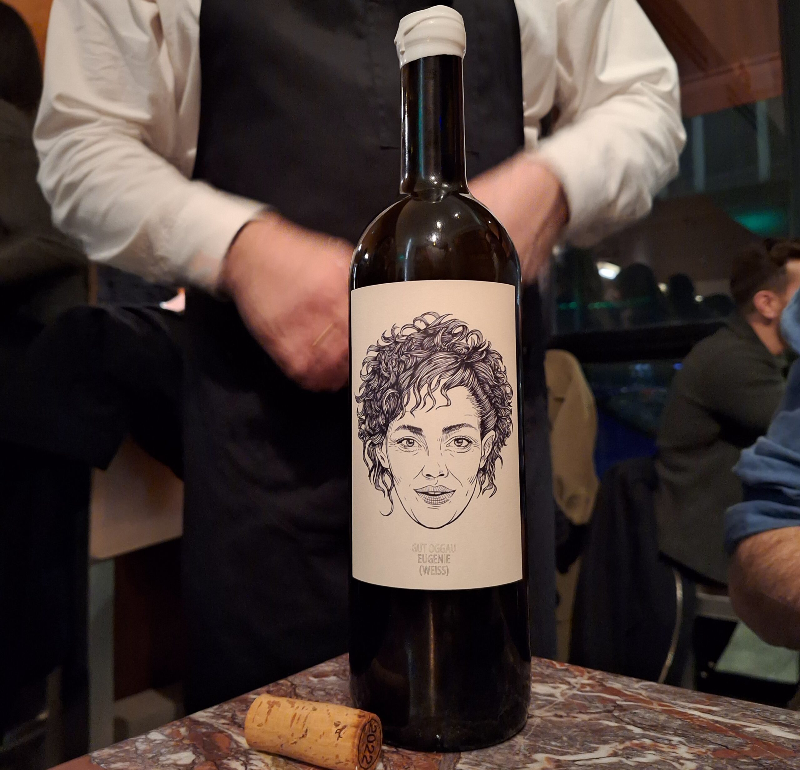 Κάθε κρασί τους έχει το πρόσωπο ενός ανθρώπου πάνω και ως περιγραφή τον χαρακτήρα του, αλλά και όλα όσα πρεσβεύει. Τα πρόσωπα δεν είναι υπαρκτά, αλλά θέλησαν να δώσουν μια πιο ανθρωπόμορφη εκδοχή στο κάθε στυλ που παρήγαγαν. Το Eugenie έχει ένα απαλό χρυσό χρώμα και πλημμυρίζει με αρώματα εσπεριδοειδών και λευκών λουλουδιών το ποτήρι σου. Στον ουρανίσκο, προσφέρει μια δροσερή γεύση πράσινου μήλου, που ξεχειλίζει από χαρακτήρα, αλλά και μία λιπαρότητα που συνδυάστηκε υπέροχα με τα δύο επόμενα πιάτα που κατέκτησαν τη δεύτερη και τρίτη θέση και στις πέντε αισθήσεις μου.