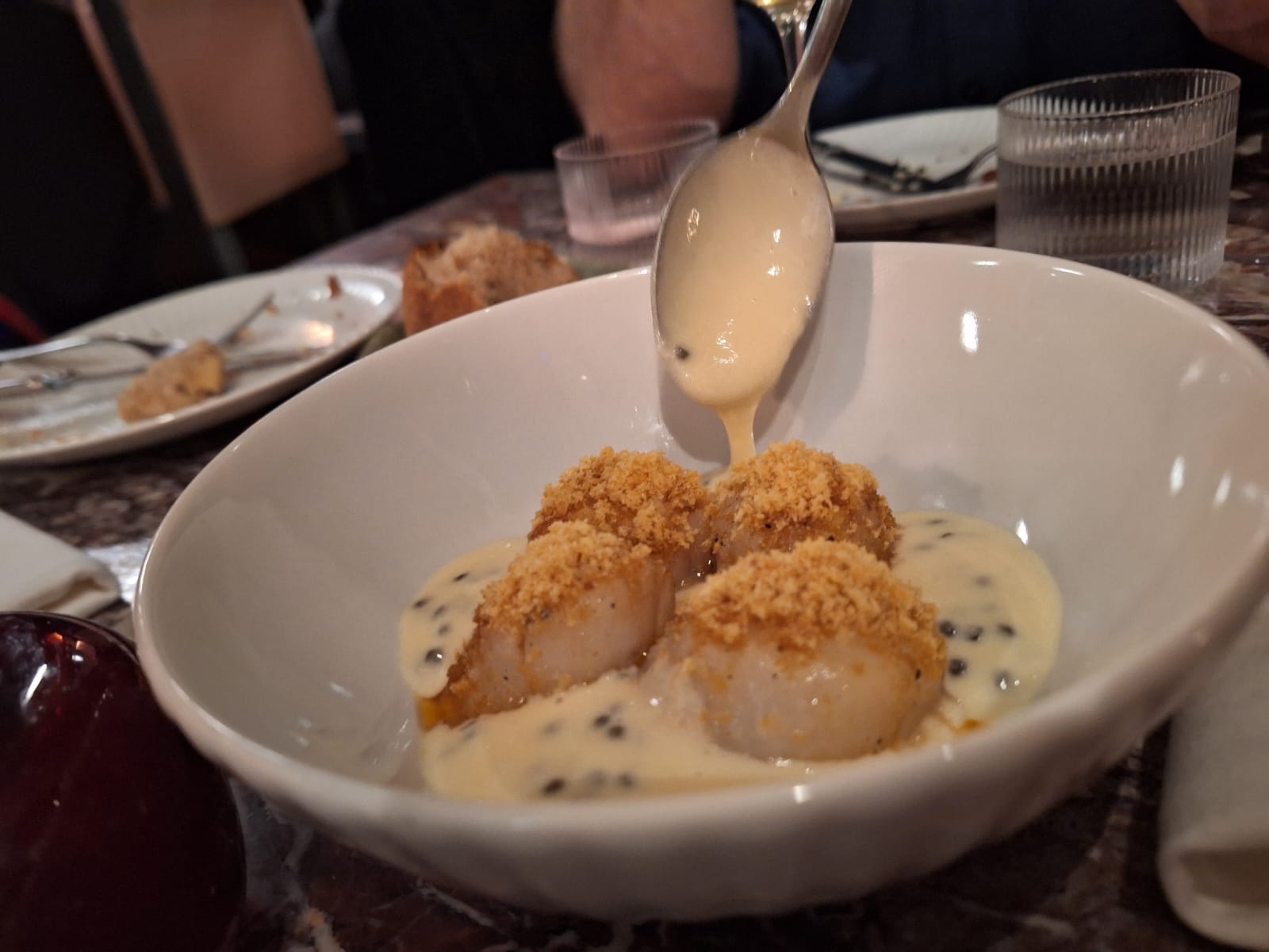 Αναφέρομαι στα ψητά χτένια με κουνουπίδι, beurre blanc και χαβιάρι και το αγαπημένο πιάτο με τη ψητή σελινόριζα, αυγολέμονο και μαύρη τρούφα. Μου τρέχουν και πάλι τα σάλια.